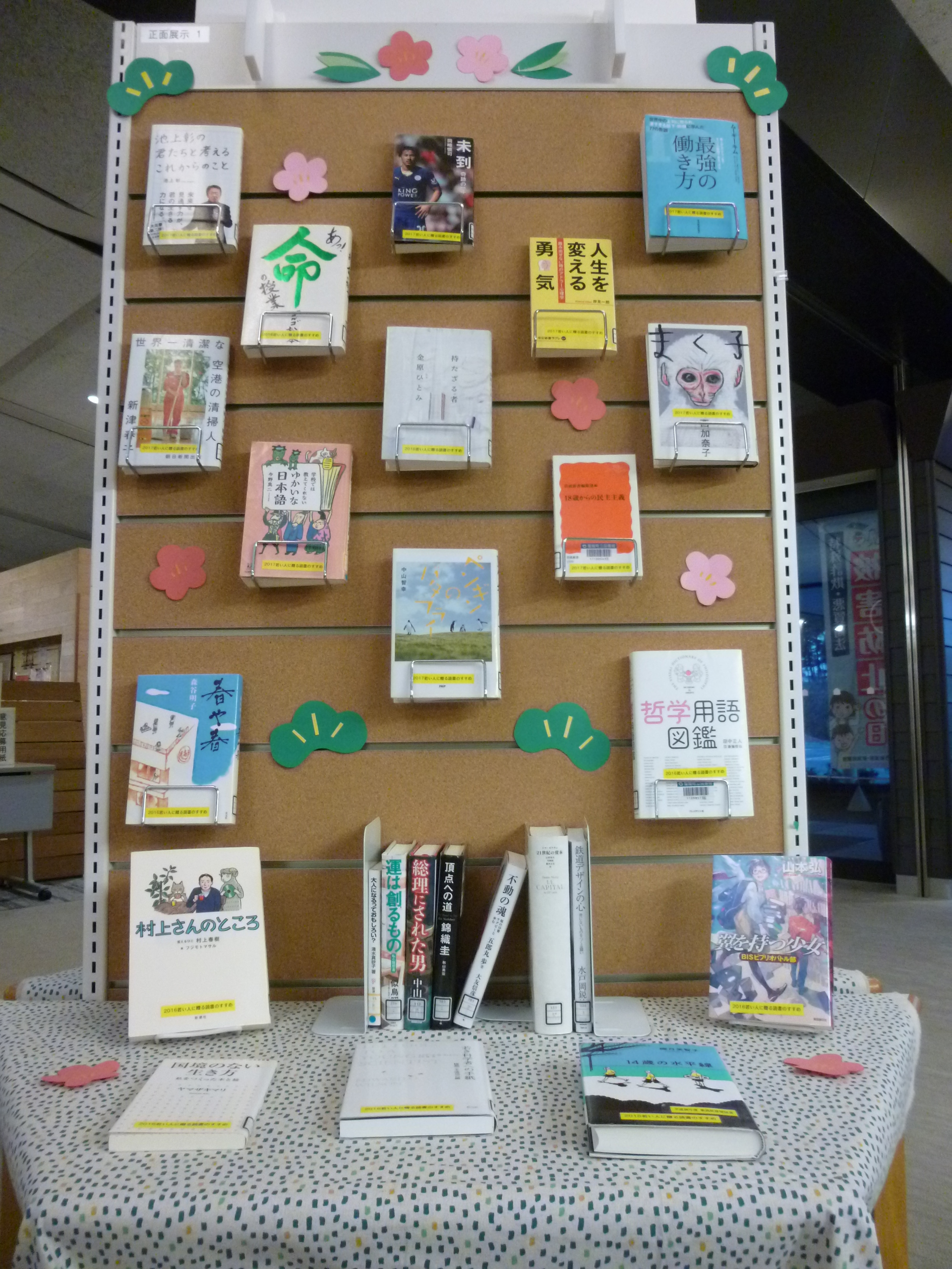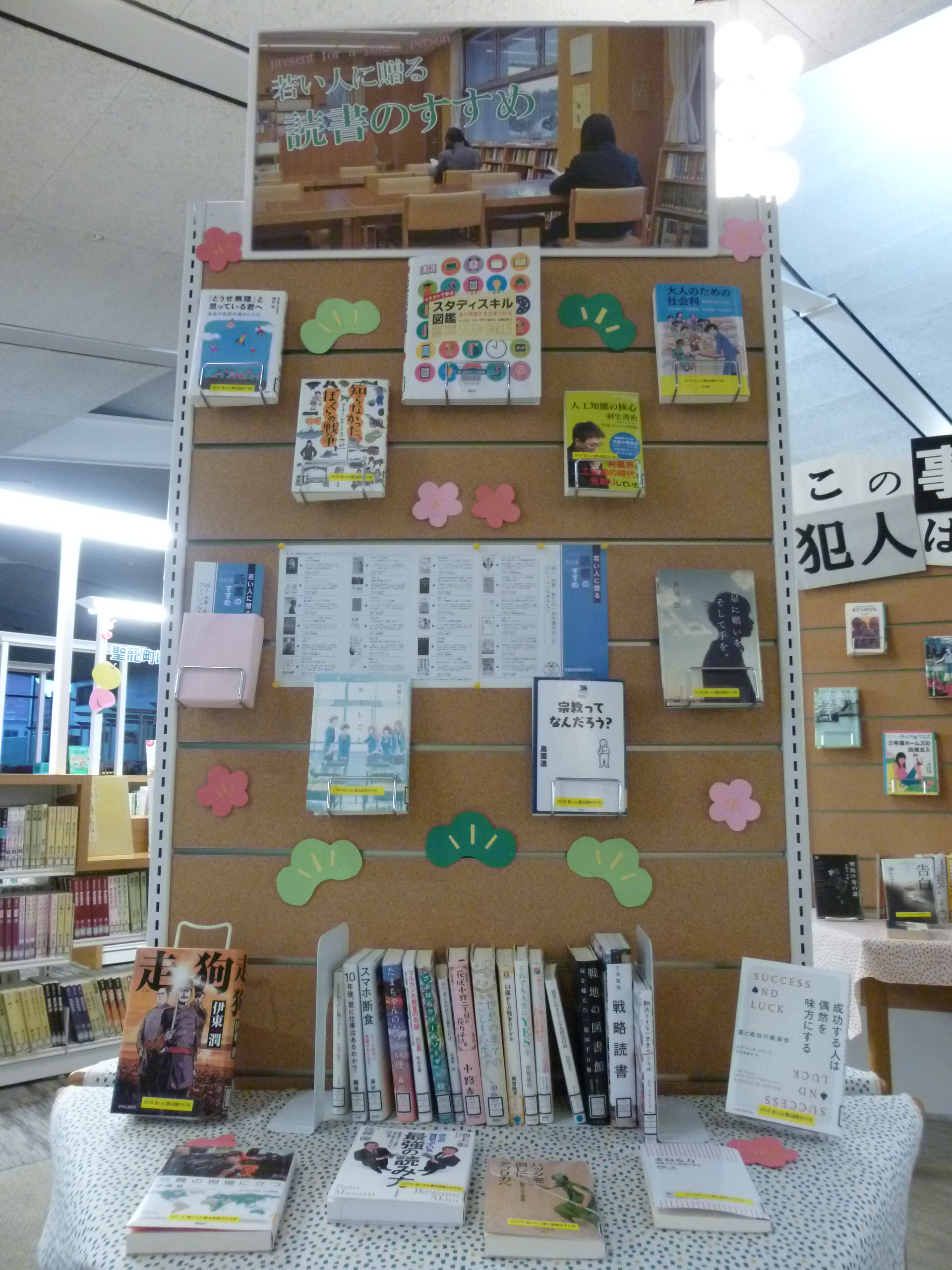 おすすめの本を、図書館内の展示スペースで