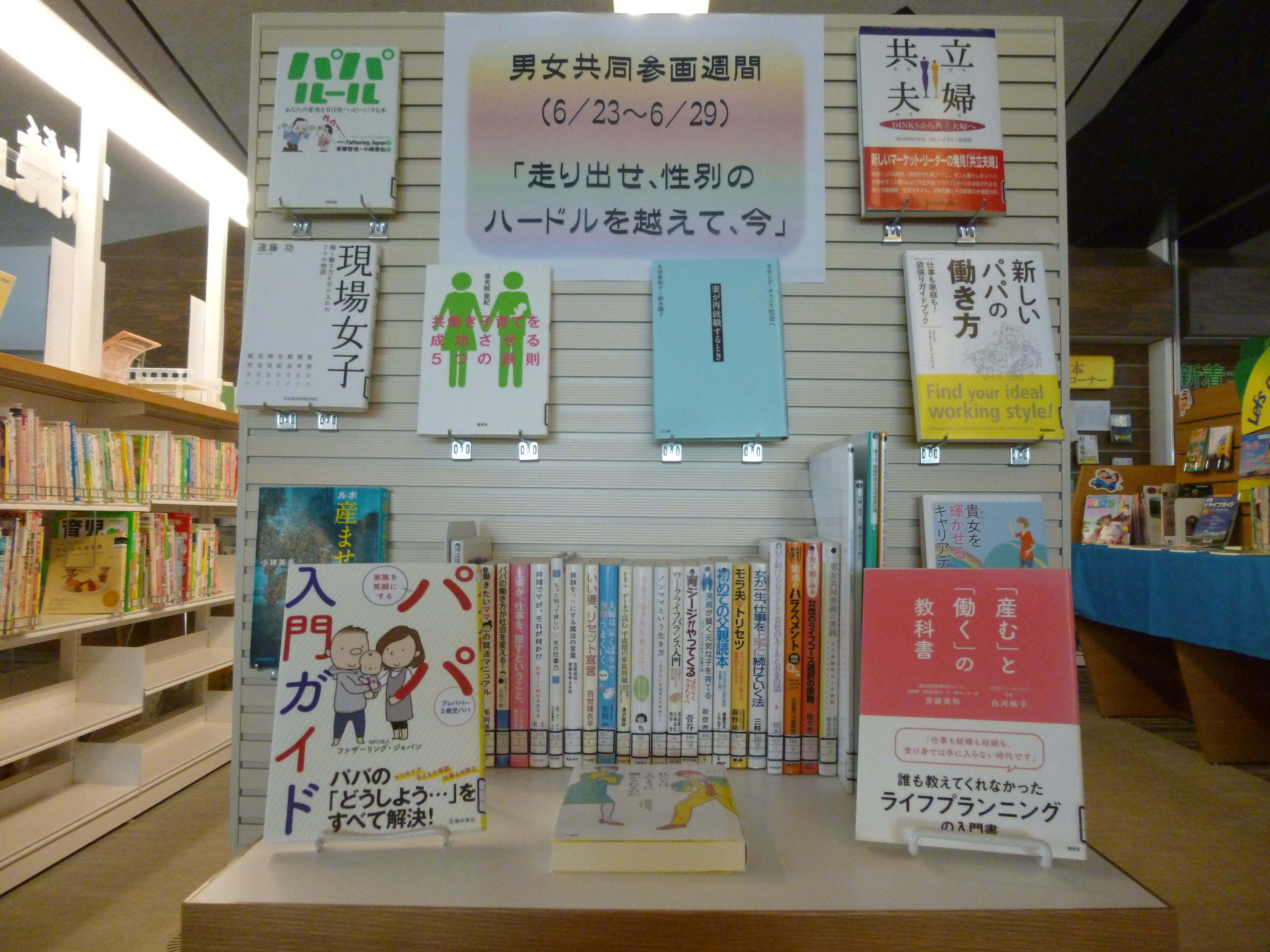 女性の活躍や子育てなどの本を展示しています。