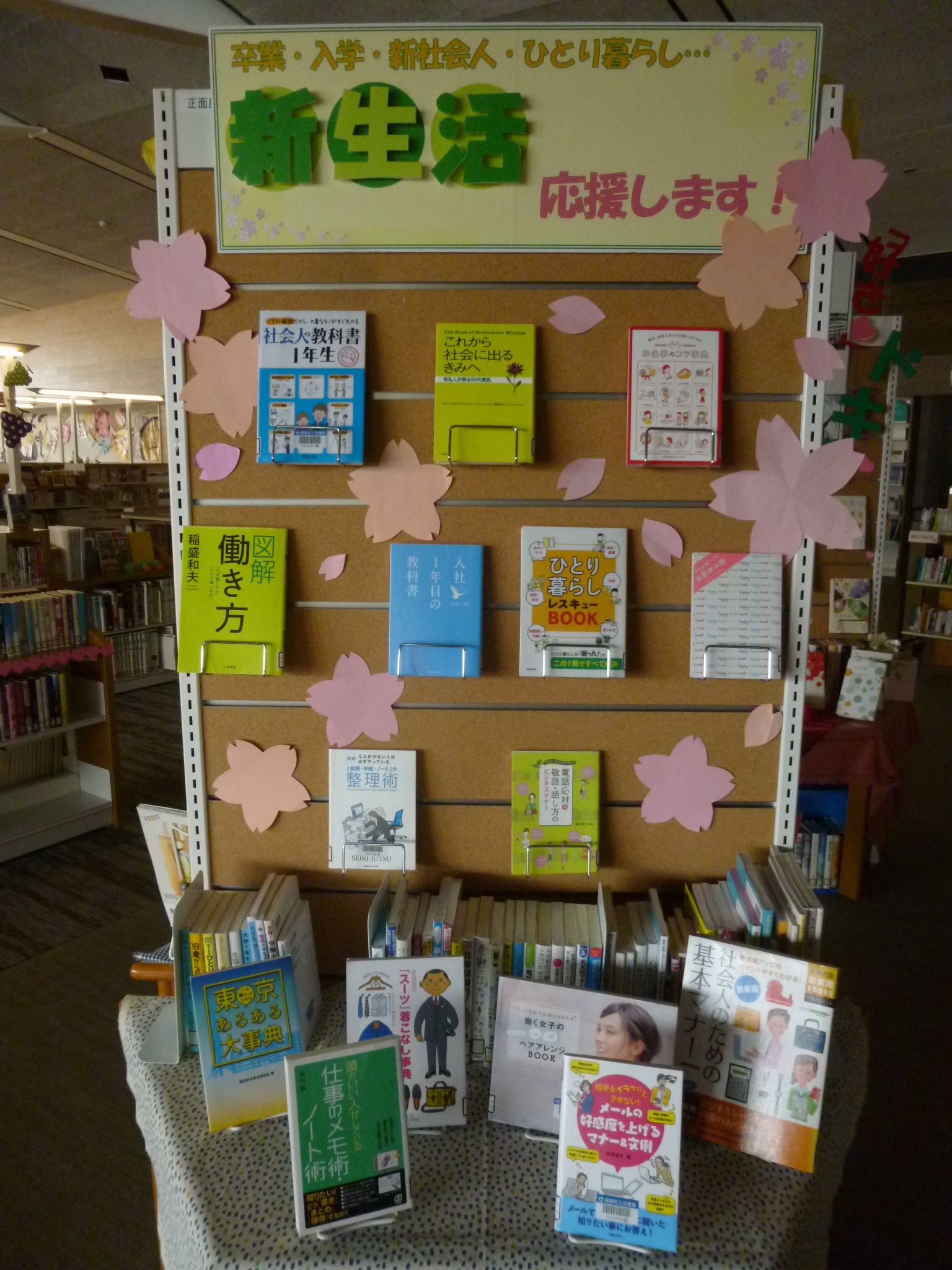 おすすめの本を、図書館内の展示スペースで