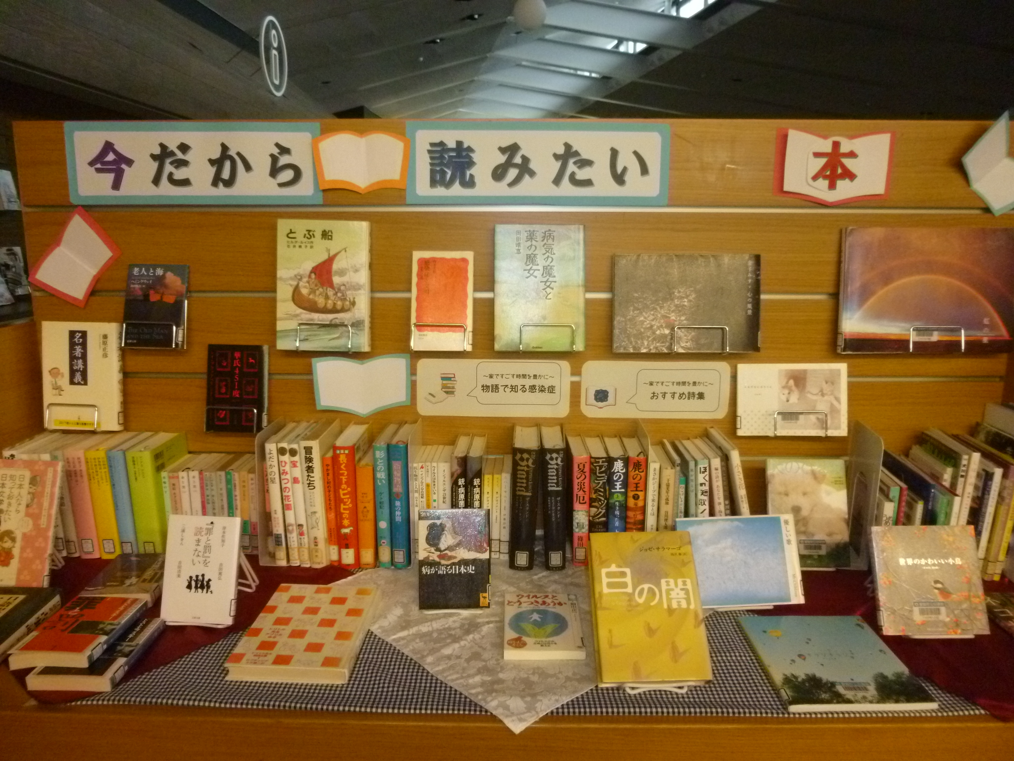 おすすめの本を、図書館内の展示スペースで