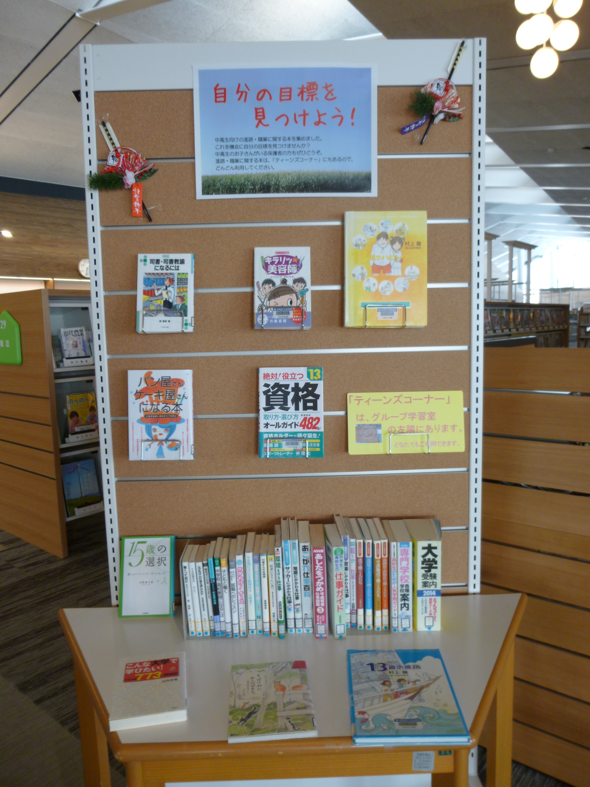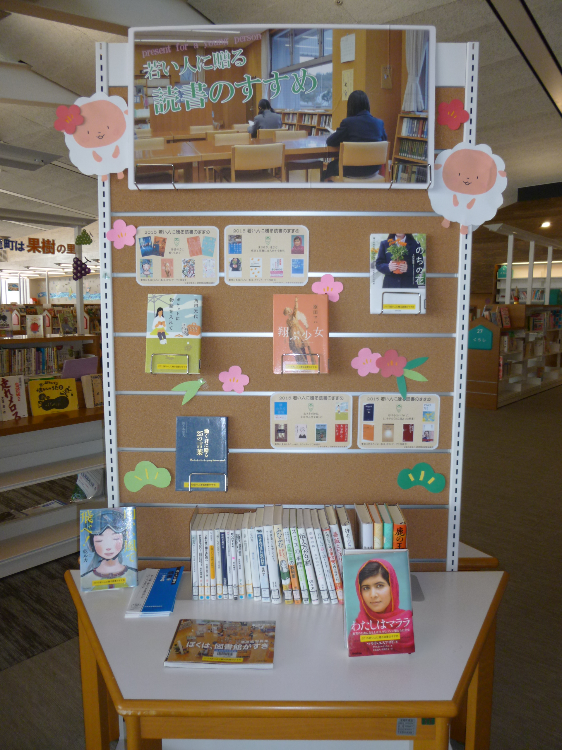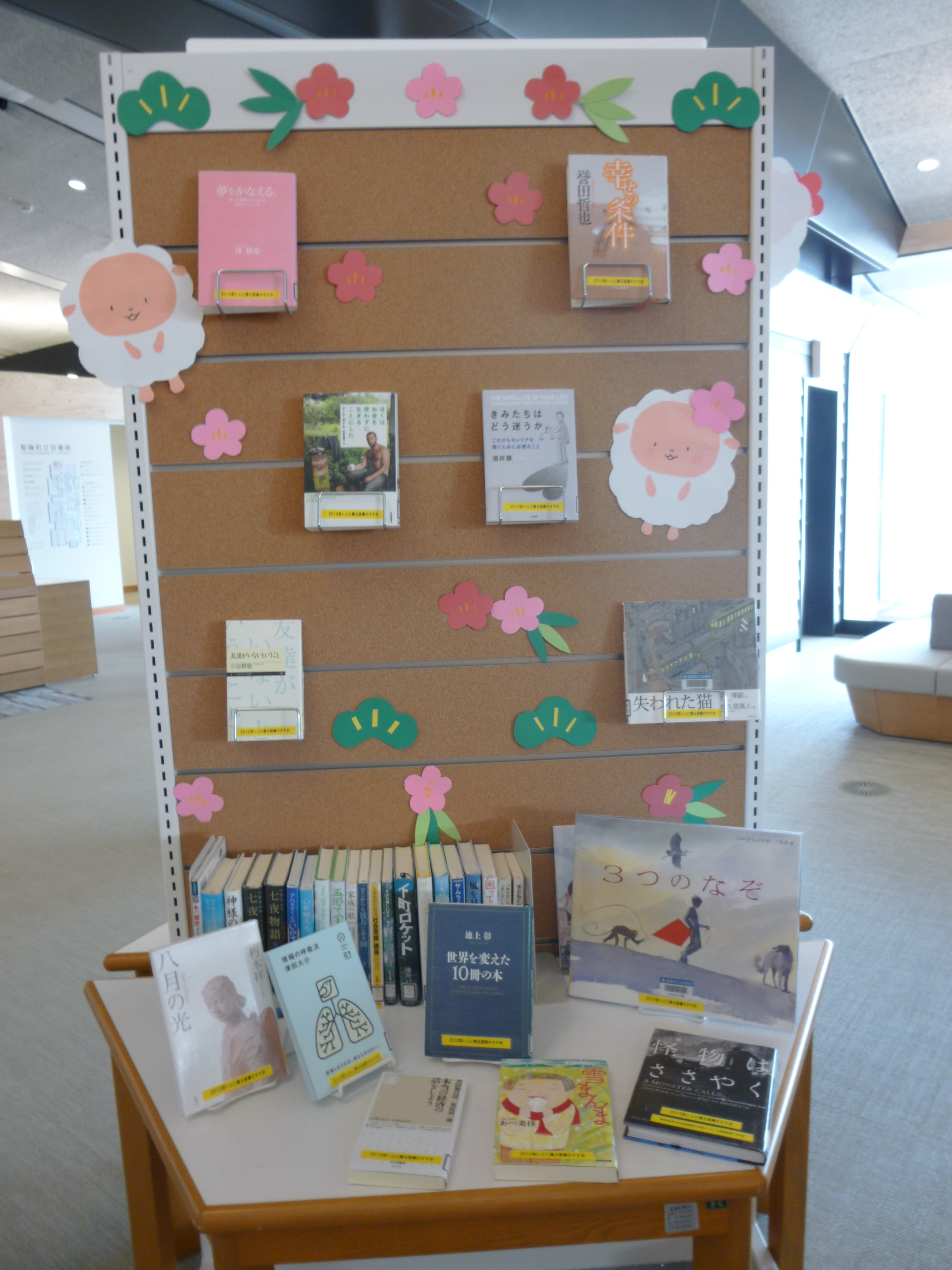 おすすめの本を、図書館内の展示スペースで