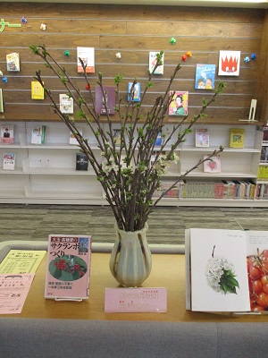 図書館に隣接しているさくらんぼ園の園主さんから、剪定した枝を分けて
