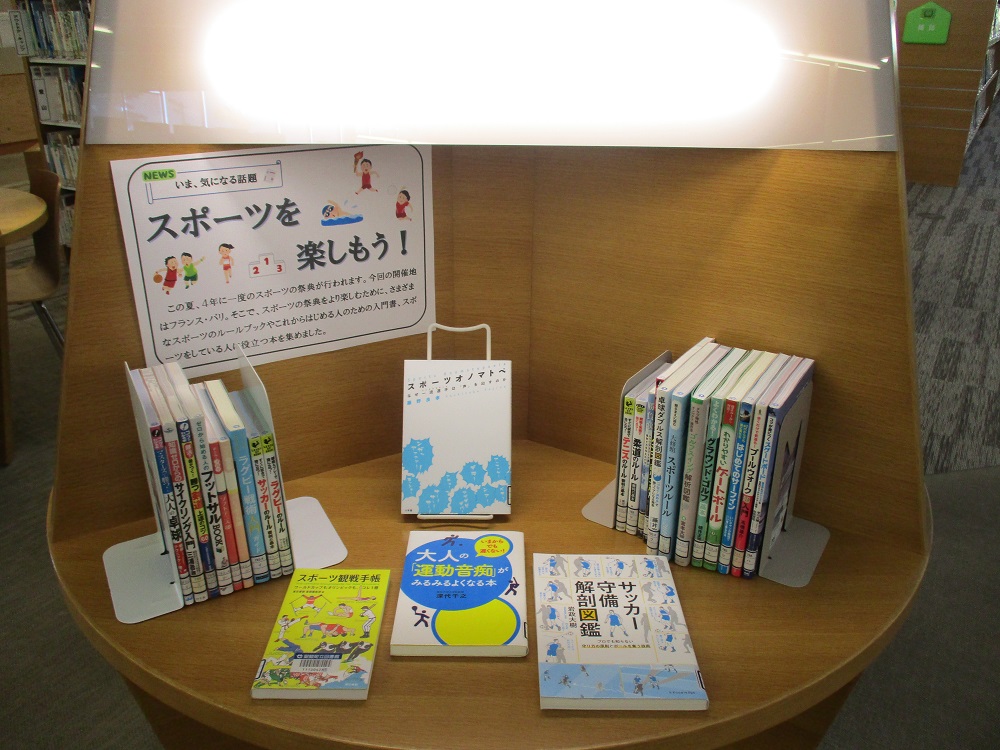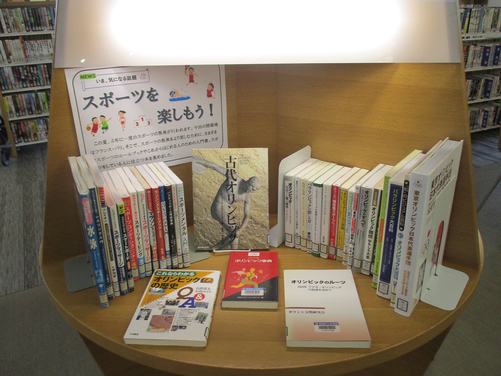 7月24日からのスポーツの祭典開催に合わせ、スポーツに関する本を集めました。応援する前に各種競技について予備知識を得ていれば、ますます楽しめること請け合いです。