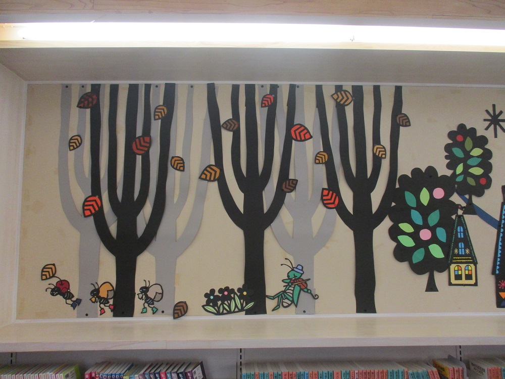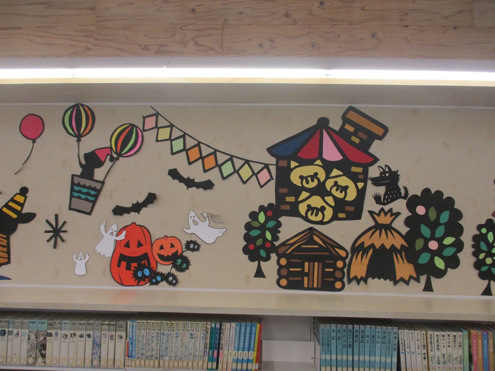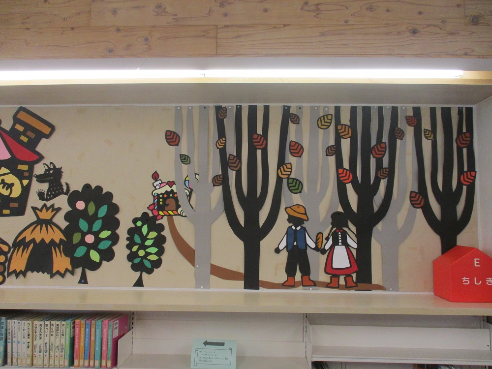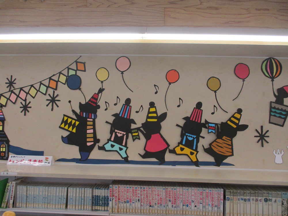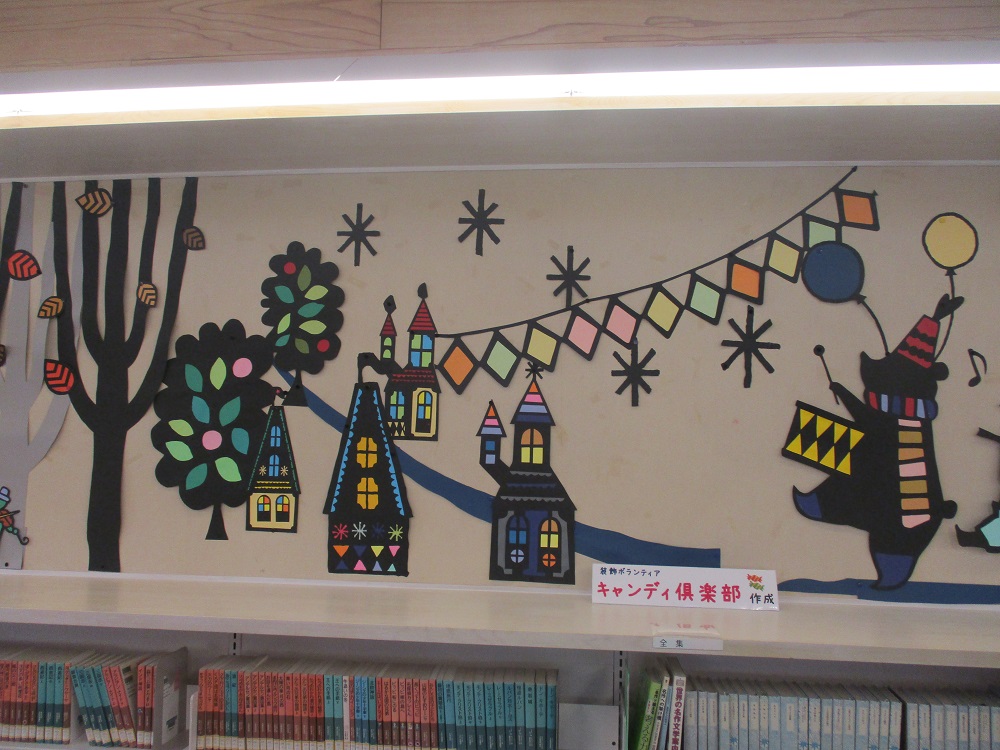 児童コーナーの壁面が、壁面装飾ボランティア「キャンディ俱楽部」の皆さんの手により、リニューアルされました。