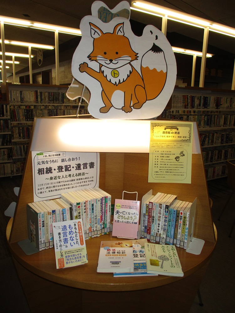 12月15日(日)に開催した「図書館de終活」にあわせ、関連図書を集めました。大切な人がいる限り誰もが直面する大きな問題に対して、みんなで考えてみませんか?