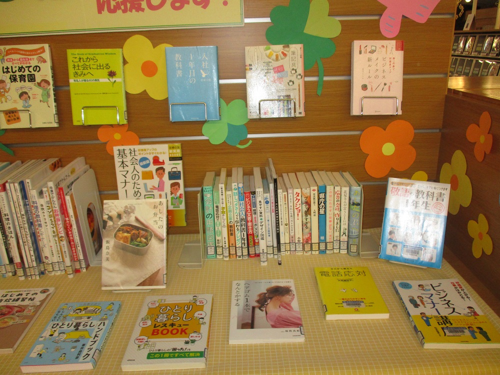 進学や就職などで新しい暮らしが始まる方も多い春。新社会人に向けたマナーや引っ越しの本を集めました。またお子さんが進学、進級する方へおすすめの本などもご用意しました。(正面玄関前から移動しました)