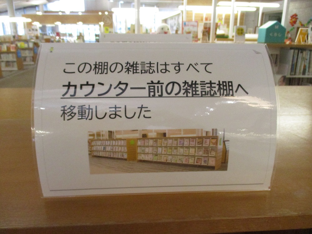 そこで記載台横にあった主に女性向けの雑誌や、NHKテキストなどをカウンター正面に移動しました。