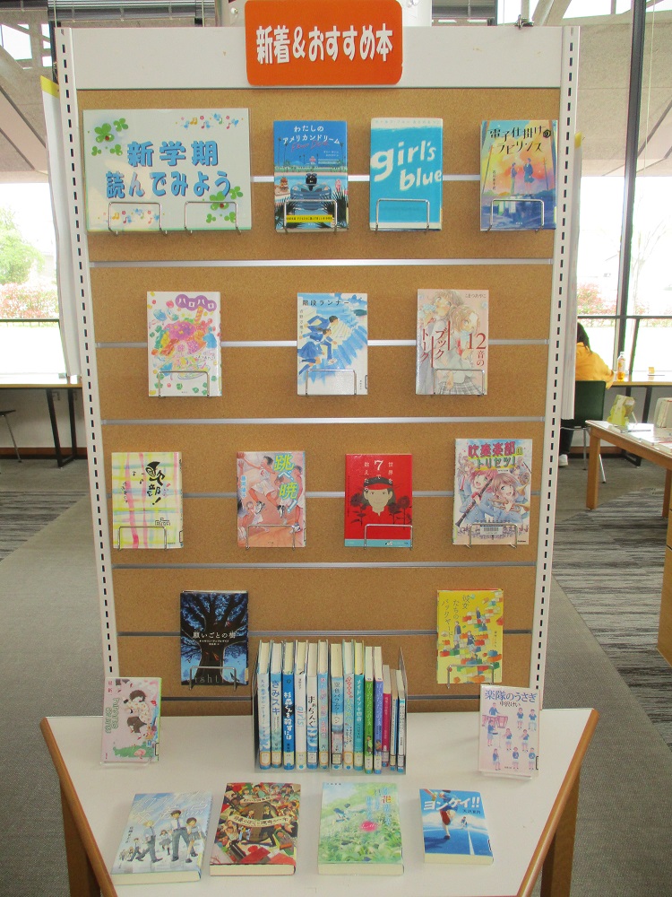 ティーンズコーナーでも、『新学期 読んでみよう』、『見つけませんか?あなたの一冊』というテーマで「新着&おすすめ本」を展示しています。