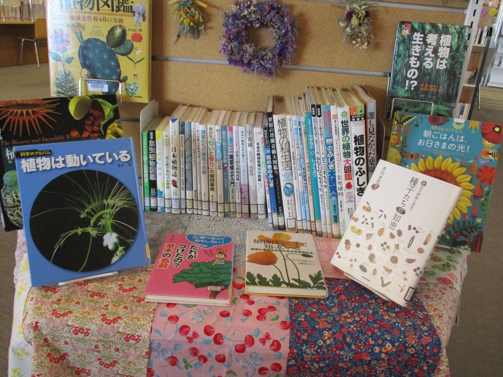 植物関係の展示がもう二つ。身近な植物の不思議な点を楽しめる資料と、草花、緑を愛した作家の小説や随筆を集めました。