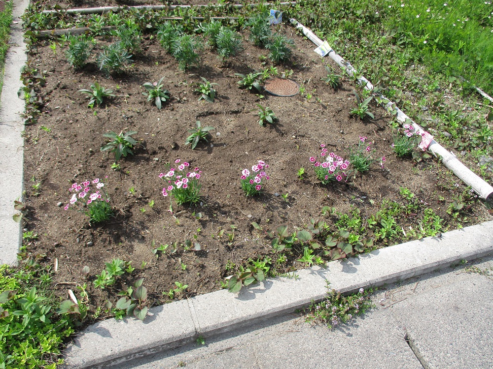 ダイアンサス、マリーゴールド、千日紅、日々草など夏に向けて開花する様々な品種が植えられました。