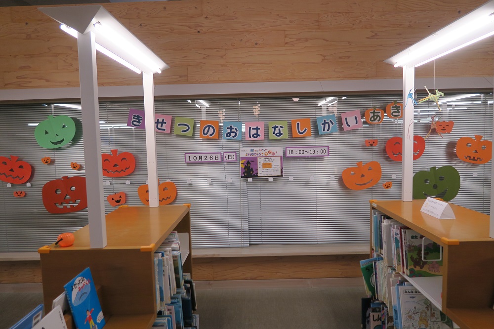 去る10月26日に開催した“よるのとしょかんdeおはなし会「ハロウィンナイト!」”。いつもとは違う夜の図書館に大勢の方々が集まりました。