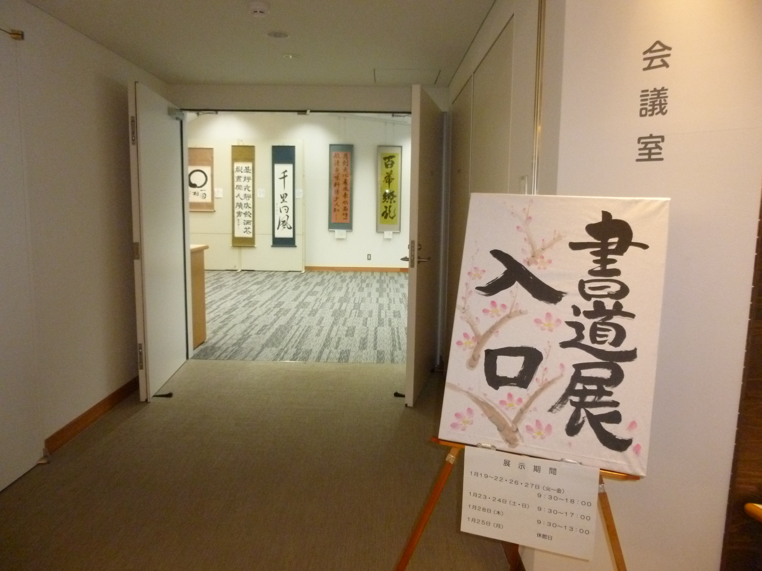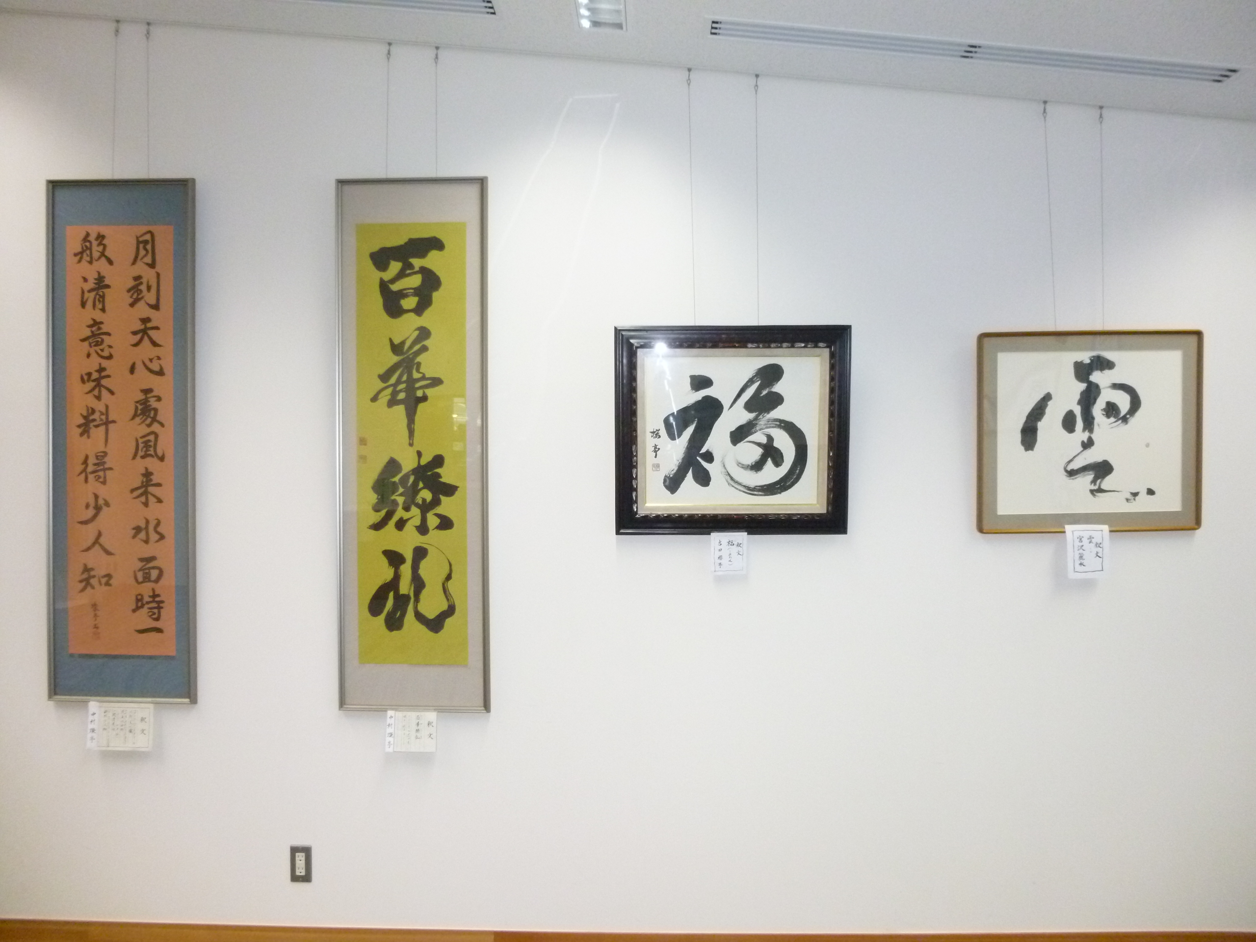 図書館の会議室で櫻亭会の書道展を開催中です。