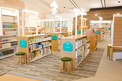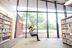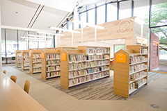 図書館で一番眺めのいいこの一角は、「大人」や「子ども」の枠にとらわれないみなさんにおすすめの場所です。ひとりで窓の外の景色を独占しながら、グループで大きな机を使って…など、どんなスタイルでも使えます。勉強だけではなく、もちろん読書でも、みなさんにおすすめの本が集めてあります。