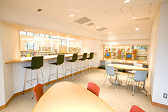 図書館内では、ふたのある飲み物以外はご遠慮いただいていますが、お持込いただいたものの飲食はこちらでできます。ほっと一息ついて、ゆっくり図書館をお楽しみください。