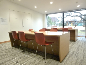 ティーンズコーナーそばには、グループ学習コーナーや学習席があるので、